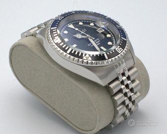 UBLAST DIVER 30 ATM - REF.UB3D4411BBK Cassa acciaio inossidabile 316L - vetro zaffiro - automatico giapponese Seiko NH35 - bracciale jubilee CARATTERISTICHE TECNICHE Funzione: ore - minuti - secondi – data Cassa: 44x11mm – acciaio inossidabile 316L Quadrante: datario a ore 3 – indici e lancette luminescenti Ghiera: girevole unidirezionale 120 scatti – inserto luminescente Movimento: giapponese automatico Seiko NH35 - (24 rubini - 41 ore di riserva di carica) Vetro: zaffiro lentino datario Corona: acciaio inossidabile 316L – avvitata a ore 3 Fondello: acciaio inossidabile 316L - avvitato Cinturino : acciaio inossidabile 316L jubilee - (220 mm circa cassa compresa) Chiusura: acciaio inossidabile 316L - deployante con gancio di sicurezza Impermeabilità: 30ATM - 300 Metri Genere: uomo Peso: 170gr circa CONDIZIONI Mai indossato