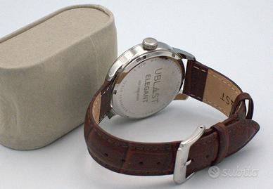 UBLAST ELEGANT - REF.UBEL40WH Cassa acciaio inossidabile 316L - vetro minerale - automatico giapponese Seiko NH35 - cinturino in vera pelle CARATTERISTICHE TECNICHE Funzione: ore - minuti - secondi – data Cassa: 40x11,5mm – acciaio inossidabile 316L Quadrante: datario a ore 3 – indici e lancette luminescenti Lunetta: acciaio inossidabile 316L -fissa Movimento: giapponese automatico Seiko NH35 - (24 rubini - 41 ore di riserva di carica) Vetro: minerale bombato Corona: acciaio inossidabile 316L – avvitata a ore 3 Fondello: acciaio inossidabile 316L - avvitato Cinturino : vera pelle - (250 mm circa cassa compresa) Chiusura: acciaio inossidabile 316L - fibbia/ardiglione Impermeabilità: 5ATM - 50 Metri Genere: uomo Peso: 60gr circa CONDIZIONI Nuovo mai indossato