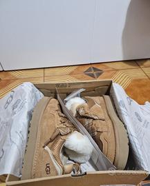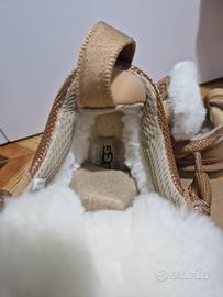 Le scarpe sono nuove di zecca, mai state indossate neanche per prova (come visibile anche dalla suola immacolata e dalla pelliccia perfettamente bianca e vaporosa). Dettagli Chiave: Marca: UGG Modello: Lowmel (il modello sneaker/stivaletto stringato di tendenza) Colore: Chestnut (pelle scamosciata marrone classico) Taglia: 37 (EU/IT) Dettagli: La tomaia è in pelle scamosciata di alta qualità con inserti in tessuto balistico intrecciato e robusti lacci coordinati. Il colletto e la linguetta sono rivestiti in morbida pelliccia sintetica bianca, per il massimo comfort e un look inconfondibile. Suola platform ammortizzata e rialzata. Incluso nella Confezione: Le scarpe vengono vendute complete di tutto, esattamente come mostrato in foto: Scatola originale UGG in cartone riciclato (con etichetta e codici visibili). Carta velina protettiva personalizzata UGG. Incarti cartacei informativi originali. Il cartellino di garanzia è posizionato all'interno della scatola. Sono perfette per l'autunno e l'inverno, un'ottima opportunità per acquistare un modello molto richiesto a un prezzo competitivo.