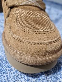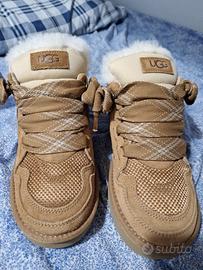 Le scarpe sono nuove di zecca, mai state indossate neanche per prova (come visibile anche dalla suola immacolata e dalla pelliccia perfettamente bianca e vaporosa). Dettagli Chiave: Marca: UGG Modello: Lowmel (il modello sneaker/stivaletto stringato di tendenza) Colore: Chestnut (pelle scamosciata marrone classico) Taglia: 40(EU/IT) Dettagli: La tomaia è in pelle scamosciata di alta qualità con inserti in tessuto balistico intrecciato e robusti lacci coordinati. Il colletto e la linguetta sono rivestiti in morbida pelliccia sintetica bianca, per il massimo comfort e un look inconfondibile. Suola platform ammortizzata e rialzata. Incluso nella Confezione: Le scarpe vengono vendute complete di tutto, esattamente come mostrato in foto: Scatola originale UGG in cartone riciclato (con etichetta e codici visibili). Carta velina protettiva personalizzata UGG. Incarti cartacei informativi originali. Il cartellino di garanzia è posizionato all'interno della scatola. Sono perfette per l'autunno e l'inverno, un'ottima opportunità per acquistare un modello molto richiesto a un prezzo competitivo.