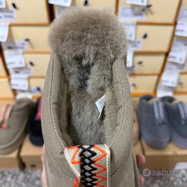 Pantofole UGG Tazzle con nappe, suola alta 4,5 cm, tacco alto per maggiore altezza, nappe intrecciate color block retrò, pelle di pecora, soffici e morbide, doppia protezione termica, trendy ed eleganti ma calde, comode da indossare, facili da indossare e togliere, adatte sia a casa che per le uscite in autunno e inverno.