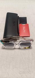 - Montatura trasparente con dettagli multicolor.
