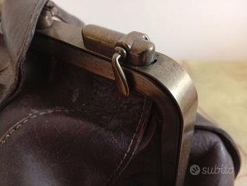 Una borsa Gladstone in pelle marrone chiaro con un
