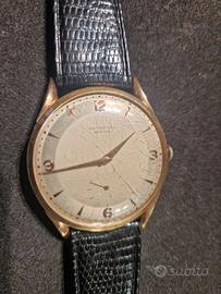 OROLOGIO UNIVERSAL GENEVE CASSA ORO DA 38 MM CORONA ESCLUSA CARICA MANUALE CINTURINO IN PELLE SOLO TEMPO. SCATOLA E GARANZIA FORNITA DAL VENDITORE.