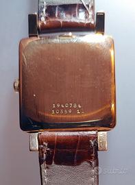 Si tratta di un modello a "cassa quadrata", spesso chiamato "Carré". La finitura tonalità oro e il quadrante circolare integrato nella cornice quadrata gli conferiscono un'estetica "mid-century" molto distinta.