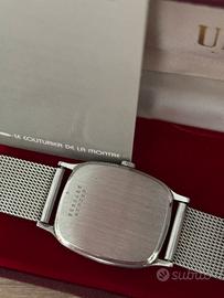 In vendita splendido Universal Genève rettangolare, referenza 842639, un elegante dress watch svizzero dal fascino intramontabile. 🕰️ Caratteristiche principali: • Movimento meccanico a carica manuale (calibro 1-42) • Cassa rettangolare in acciaio circa 26x37 mm • Epoca: anni ‘70 • Quadrante originale (texture/marmo/opaline a seconda della variante) • Vetro in buone condizioni • Cinturino in pelle (o bracciale originale se presente) ✨ Orologio dal design raffinato e minimal, perfetto sia per collezionisti che per uso quotidiano elegante. 📌 Condizioni: Buone condizioni generali considerando l’età. Normali segni del tempo che ne valorizzano il carattere vintage.