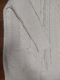 CARDIGAN lungo lavorato con tasche colore panna 80% acrilico 20% lana
