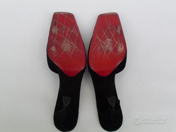scarpe usate, numero 39, tacco, nero scamosciata, cuoio, senza scatola originale ma con altra scatola