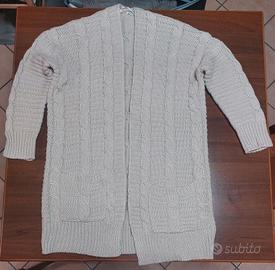 Cardigan lungo lavorato con tasche colore PANNA 80% acrilico 20% lana taglia M marca PIMKIE