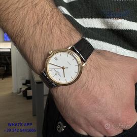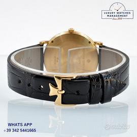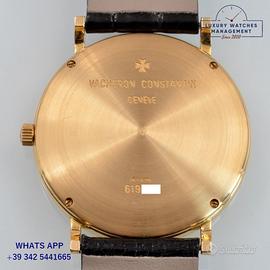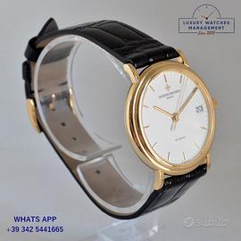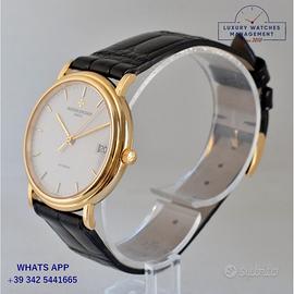 Per conoscere il prezzo e le caratteristiche tecniche dei nostri orologi visita il nostro sito ufficiale: https://lwmitalia.com/it Tutti i nostri orologi vengono verificati e revisionati dal nostro laboratorio specializzato “KeepTime Lab”: https://keeptimelab.com/it/ Vacheron Constantin Classic Patrimony ultra piatto oro giallo 18KT, anno di produzione 1995 circa, ghiera oro giallo 18KT liscia a scalino, vetro minerale piatto, quadrante tapisserie colore bianco con data, indici e sfere a bastone in oro giallo 18KT, movimento meccanico a carica automatica, cinturino in alligatore lucido colore nero con fibbia oro giallo 18KT originale Vacheron Constantin. Orologio originale Vacheron Constantin in ogni sua parte, molto raro, revisionato in ottime condizioni, segni di usura assenti o appena visibili, scatola/pochette originale Vacheron Constantin dell’epoca, estratto dagli archivi ufficiali Vacheron Constantin in arrivo, garanzia/dichiarazione di vendita nostro negozio valida per 12 mesi.