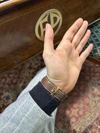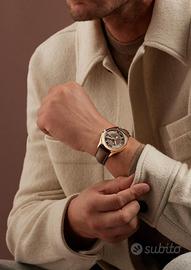 Bracciale: In pelle marrone, con chiusura deployant oro rosa loggata. In aggiunta, 2 cinturini in pelle originali nuovi color Panna e Nero.