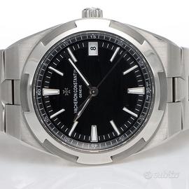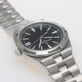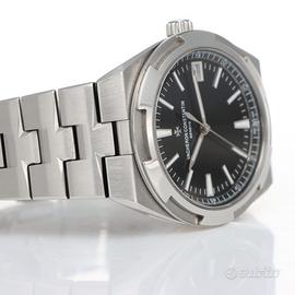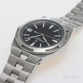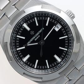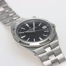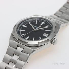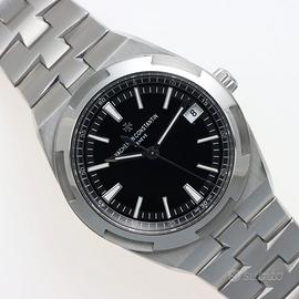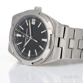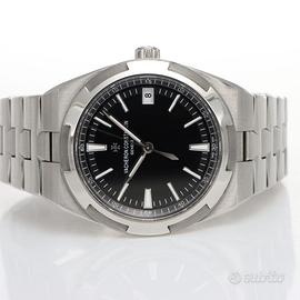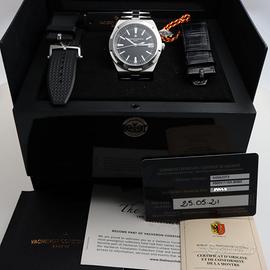 Vacheron Constantin Ref. 4500V/110A realizzato in acciaio, Quadrante Nero con indici a bastoni, Lunetta fissa liscia in acciaio, Cassa di diametro 41 mm, Corona di carica a vite, bracciale modello classico della maison satinato e due cinturini originali in aggiunta. Orologio in condizioni eccellenti, Full Set Garanzia datata 05/2021.