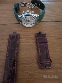In dotazione 2 cinturini pelle/alligatore verde e viola artigianali realizzati appositamente su misura per mod 49140