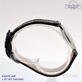 Vacheron Constantin Patrimony modello classico in platino 950, anno di produzione 1999, vetro zaffiro bombato antiriflesso, quadrante color bianco con indici e sfere a bastone in platino 950, movimento meccanico a carica manuale, cinturino in alligatore lucido colore nero con fibbia in platino 950 originale Vacheron Constantin.