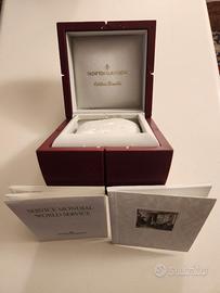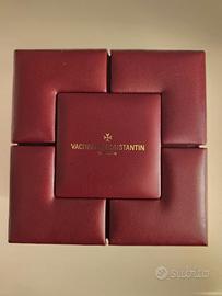 Vendo scatola originale per Orologio Vacheron Constantin, originale 100%, scatola in pelle bombata (molto bella) completa di contenitore porta scatola in cartone rigido originale Buono stato generale come da foto (rivestimento interno leggermente usurato come da foto) Dimensioni contenitore scatola: 12,6 cm. x 12,6 cm. ; altezza 9,2 cm. Dimensioni scatola: 11,4 cm. x 11,4 cm. ; altezza 8,5 cm.