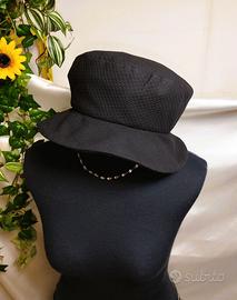 Cappellino da donna nero A cloche/secchiello/pescatore con tesa medio larga Marca Vagabond - made in France In tessuto a nido d'ape 100%cotone Completamente foderato e con nastro gros grain 100% cotone Taglia unica - la circonferenza interna misura circa cm 54 🤩TROVI MOLTO ALTRO TRA I MIEI ANNUNCI - sconti su acquisti multipli, contattami 🤩