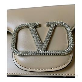 VALENTINO GARAVANI.Borsa a spalla o a mano,Loco in vera pelle liscia,color beige. Con il Vlogo decorato di zirconi.