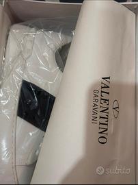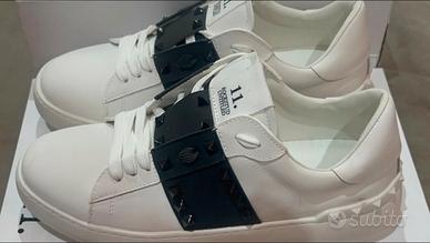 Scarpe sneakers Valentino Garavani Rockstud 11.untitled size 44 eu , pelle liscia bianco e nera . Nuivo Con scatola originale e dustbag.