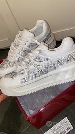 vendo sneakers Valentino Garavani colore bianco con applicazioni di strass, modello limitato con dettagli iconici, ricercato.