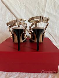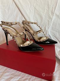 Vendo queste Valentino Rockstud in taglia 38 (abbiamo anche in taglia 37), colore nero vernice con cinturini nude e iconiche borchie dorate. Modello super riconoscibile ed elegante, ideale per outfit chic e serate speciali.