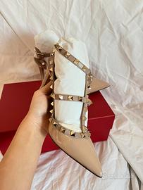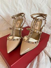 Vendo queste Valentino Rockstud in taglia 38 (abbiamo anche in taglia 37), colore nude vernice con cinturini e iconiche borchie dorate. Modello super riconoscibile ed elegante, ideale per outfit chic e serate speciali.