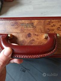 Valigetta 24 ore vintage in vera pelle e radica di Momo Design. Chiusura a scatto con combinazione perfettamente funzionante. Condizioni perfette