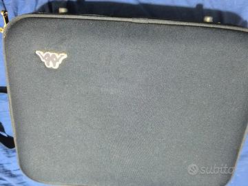 Valigetta semirigida , colore blu scuro, dotata di tracolla, marchio Robe di Kappa. Modello 24 ore, porta tablet , pc, porta documenti , presenta vari inserti all’interno. Misure: altezza 38cm x lunghezza 46cm x spessore 10cm.
