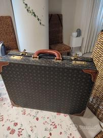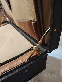 Valigetta da lavoro in pelle, con dettagli in ottone e cuoio. Apertura a clip con combinazione 6 numeri