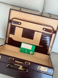 Valigetta 24 ore in vera pelle rigida color bordeaux/marrone scuro.