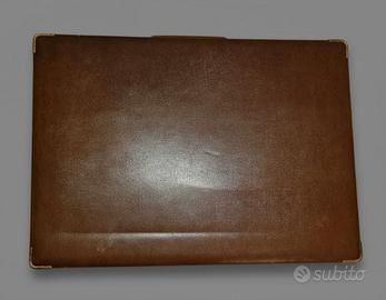 Interno: Rivestimento integrale in pregiato scamosciato color ocra, dotato di ampi scomparti a soffietto per documenti e tasche porta penne/biglietti.