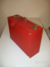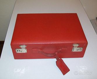 Molto robusta. Misure: 45x33x15,5 cm. Fondo dei contenitori in vetro con stella molata. Manca bottone di chiusura dell'astuccio del manicure. Possibilità di rimpiazzare lo specchio perduto. Presente una piccola ammaccatura sul lato opposto a quello della maniglia di trasporto.