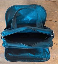Borsa/valigetta Roncato colore blu, dimensioni 40cm L, 27 cm H, 18 cm P, dotata di 3 scomparti interni accessibili da 3 diverse cerniere, altra cerniera posteriore per aggancio trolley, lucchetto e chiavi originali, tracolla, maniglia. Usata 2 volte. Misure anche come bagaglio a mano.