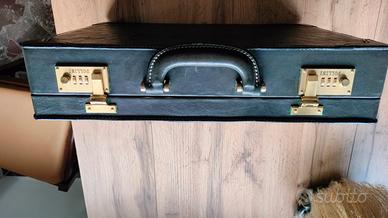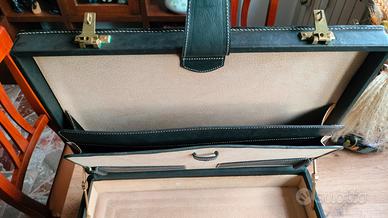 Elegante valigetta-cartella 24 ore Pollini originale, realizzata in vera pelle di vitello color cuoio e nero di alta qualità con lavorazione artigianale. Un accessorio iconico pensato per chi ama lo stile classico e la qualità senza tempo.