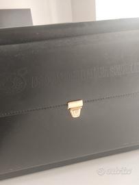 valigetta da viaggio in pelle nera rigida della Franzen dell'associazione italiana sommelier per attrezzature da barman. Accessorio utilizzato molto in passato, interno in ottime condizione, esterno leggermente logorato. Essendo pelle, può essere ravvivato.