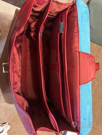 Valigetta in vera pelle con scomparti multipli e tracolla che si può configurare in due modalità (borsa o cartella). Alcune imperfezioni visibili in foto.