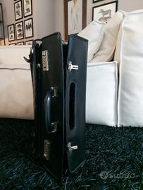 splendida valigetta 48 ore, in pelle nera, marchio POLLINI. perfetta, pari al nuovo. dim. 45x22px33h. chiusura a combinazione, con tasche esterne a soffietto, molto capiente.