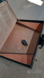 Bellissima valigetta 24 ore rigida in pelle con dettagli in ottone. Chiusura a scatto con chiave (2copie). Soffietto interno portadocumenti e scomparto con cerniera. Qualche segno da utilizzo come in fotografia
