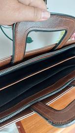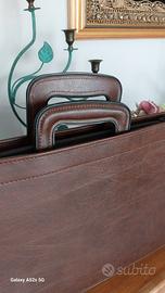 Valigetta portadocumenti vintage, con manici retrattili, in finta pelle marrone. In ottime condizioni. Dimensioni (senza minici) 41x28x12 cm