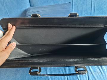 Mai usata, leggera, profondità ridotta ma estensibile, si chiude con cerniera e ha 2 scomparti interni. Misure: Altezza 30 cm, larghezza 42 cm, profondità minima 4 cm
