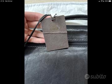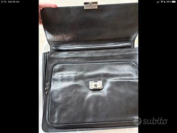 Cartella/valigetta The Bridge da lavoro da uomo, modello Story. Realizzata in pelle naturale nera, simbolo dell'eccellenza artigianale italiana del marchio. Molto elegante e ben strutturata, ideale per portare un laptop. Chiusura a scatto, munita di doppio scomparto interno, ampio ed organizzato. Tasche interne porta documenti, tasca posteriore con chiusura a zip. Logato The Bridge. In perfette condizioni, mai utilizzata. Qualità: 10/10✅ ⚠️Prezzo trattabile ⚠️