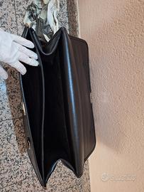 In alto sinistra nero in pelle con cartellino h 33 larghezza 45 prof 15