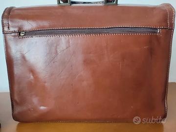Valigetta professionale in vera pelle, dal design elegante e senza tempo. Dotata di manico rinforzato, chiusura in metallo color ottone e cuciture robuste. Interno capiente con scomparti multipli, ideale per documenti, laptop o materiali da lavoro. Presenta segni di utilizzo che ne raccontano la storia, ma è perfettamente funzionale. Un accessorio raffinato per chi ama lo stile vintage o cerca un oggetto di qualità artigianale.