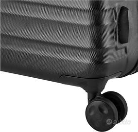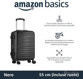 Amazon Basics Valigia da Cabina Trolley ABS 4 Ruote Girevoli 55 cm NeroValigia rigida Amazon Basics: valigia da 55 cm con guscio in ABS extra spesso dalla finitura antigraffio e 4 coppie di ruote girevoli per una mobilità ottimale. Colore: nero.