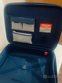 Vendo Tracolla removibile e regolabile colore Blu notte marchiato ‘ Kappa’. E’ una valigia ideale come bagaglio a mano e l’interno e’ dotato di tasche e porta oggetti che la trasformano anche in beauty case. Unisex.