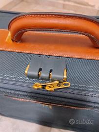 Vendo valigia morbida blu scuro con inserti marrone chiaro con ruote e maniglia per facilitare gli spostamenti. Chiusura con chiavi e/o combinazione.