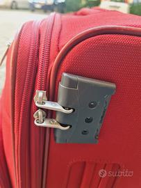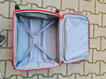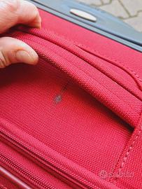 Vendo valigia cabin size Samsonite rossa. Misure: Altezza 49 cm Larghezza 37 cm Spessore 25 cm Serratura a combinazione funzionante, tutte le zip sono funzionanti, manico estensibile perfetto. Interno come nuovo; presenta invece segni di usura esterni dovuti all'utilizzo, una macchia come da foto vicina alla maniglia e le ruote non girano in modo fluido e si bloccano. Solo consegna a mano su Bologna.