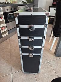 Valigia rigida composta da una base + 3 cassetti + 1 coperchio. Con rotelle. Made in Italy. Disponibili 2 divisori per la base e 6 per i cassetti. Usata pochissimo.