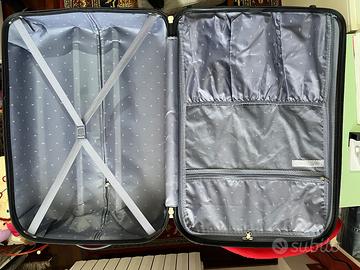 Descrizione Valigia grande Carpisa da stiva. Dimensioni: altezza cm.77-larghezza cm. 47-spessore cm.30. Materiale polipropilene antiurto. Dotato di lucchetto con combinazione. Dotata di copertura antigraffio. Usata una volta sola. Con 4 ruote piroettanti. Colore fucsia. In perfette condizioni. Vendo per mancato utilizzo.