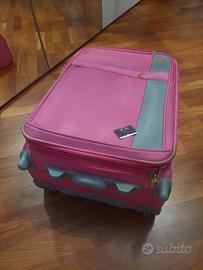Vendo valigia brand "Carpisa" color rosa. Dettagli e difetti visibili in foto (uno dei manici corti è rotto ma l'altro e quello in metallo sono intatti). É una valigia molto robusta. Anche il manico in metallo è bello resistente. É estendibile,ha diverse tasche,è molto comoda. Vendo perché per motivi personali di spostamenti è ormai troppo grande per me.