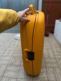 Capiente valigia Roncato da aereo in PVC con ruota funzionante comoda nel trasporto e chiusura con codice bel colore giallo riconoscibile allo scalo ha viaggiato ma ancora in più che buone condizioni dimensioni nelle foto. Consegna a mano